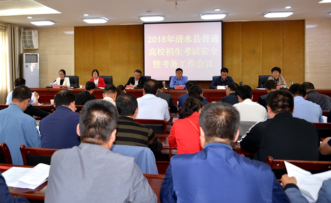 5月28日,清水縣召開2018年高考考務(wù)工作會(huì)議,會(huì)議貫徹落實(shí)全國(guó)、省、市普通高校招生考試安全工作電視電話會(huì)議精神,安排部署我縣高考工作?h委副書記、縣長(zhǎng)馬越垠,縣委常委、宣傳部長(zhǎng)宋賢雄,縣人大常委會(huì)副主任畢德祥,縣政府副縣長(zhǎng)李寶玲,縣政協(xié)副主席曹鳳娥出席會(huì)議?h招生委員會(huì)成員單位、各相關(guān)部門和各考點(diǎn)負(fù)責(zé)人參加會(huì)議。