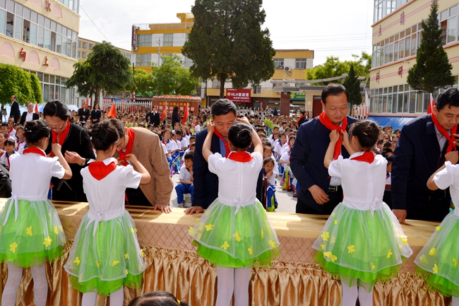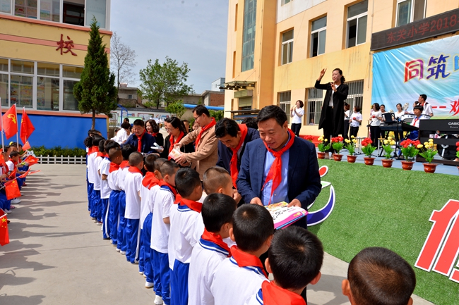 在縣東關小學,馬越垠一行觀看了小朋友們表演的精彩節(jié)目,學生們?yōu)樗麄兿瞪狭缩r艷的紅領巾。馬越垠在觀看了孩子們精彩的表演后,為學生代表們送上了書包等文具用品,并鼓勵孩子們要珍惜現(xiàn)在美好的生活,從小崇尚美德、踐行美德,培養(yǎng)好思想、好品行、好習慣,樹立遠大的志向和崇高的理想信念,成為對國家和社會有貢獻的人。