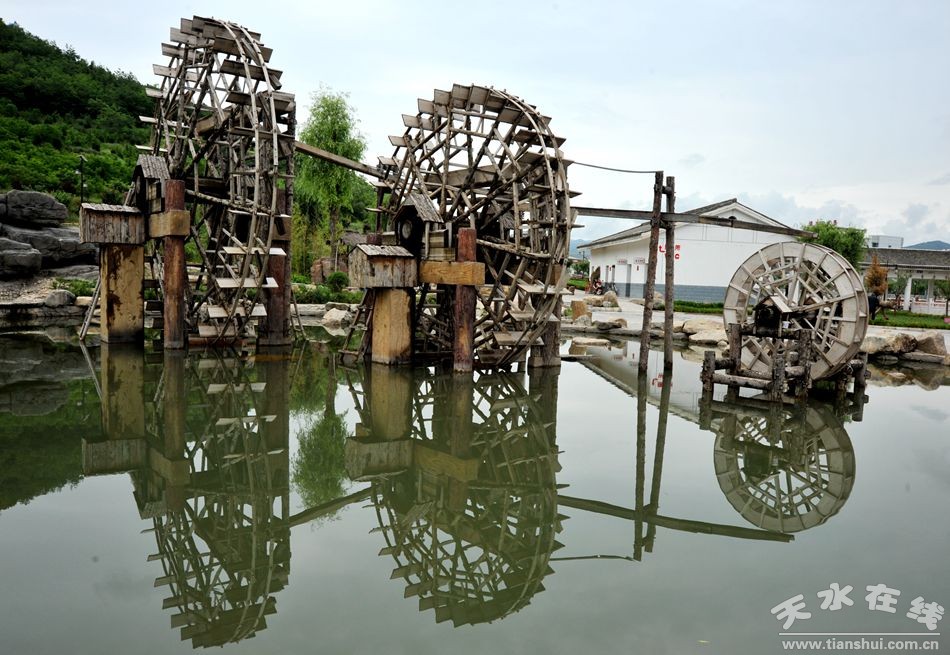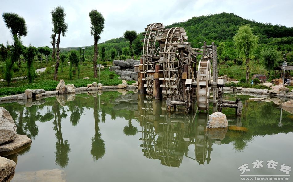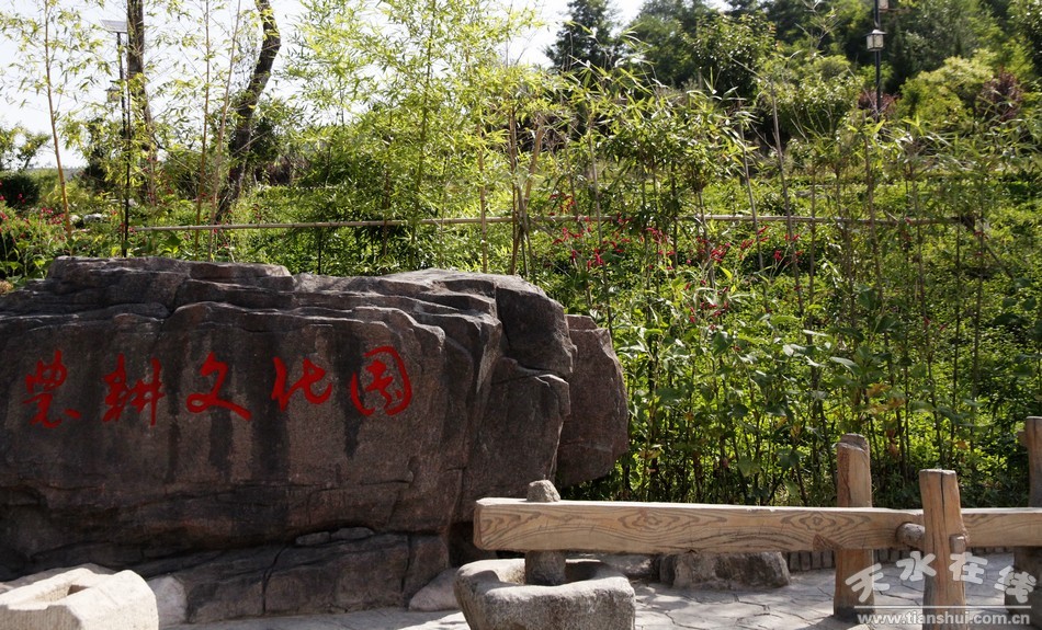 在入口處豎立寓意三皇五帝的8根文化柱、西北側(cè)小廣場的景石、東南側(cè)的水車園、農(nóng)耕器具園,體現(xiàn)了軒轅黃帝在遠古農(nóng)耕文化的歷史地位和聰明智慧。勤勞樸實的清水人民豐富和傳承了先祖農(nóng)耕文化的內(nèi)容,構(gòu)成了景觀節(jié)點,成為該縣弘揚軒轅文化、打造軒轅歷史文化名城的重要標志。