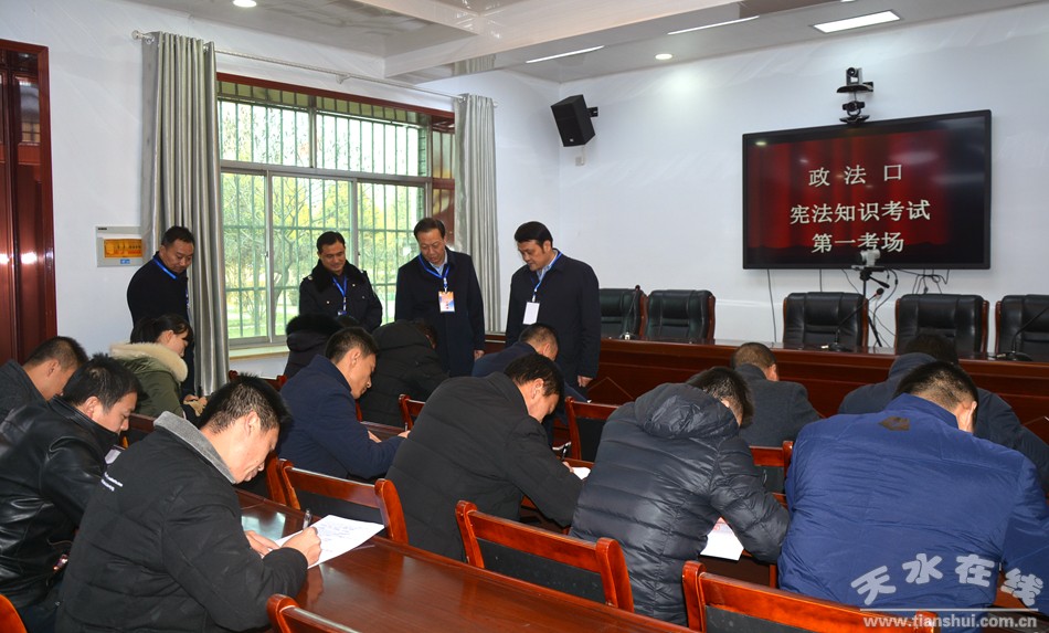 12月7日下午,清水縣組織全縣干部職工進(jìn)行了憲法法律知識(shí)閉卷考試。清水縣人大常委會(huì)主任周偉東,縣委常委、政法委書記秦永斌到考場(chǎng)現(xiàn)場(chǎng)巡考。