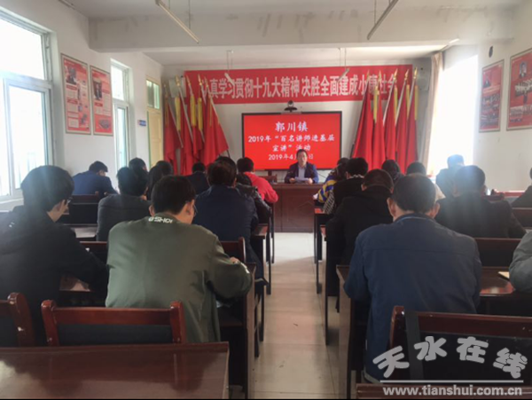 4月29日,郭川鎮(zhèn)黨委書記李赟在郭川鎮(zhèn)組織開展習(xí)近平總書記在十三屆全國人大二次會議甘肅代表團參加審議時的重要講話精神及習(xí)近平在重慶主持召開解決“兩不愁三保障”突出問題座談會上的講話精神為主題的宣講活動,郭川鎮(zhèn)部分領(lǐng)導(dǎo)、全體駐村干部、貧困村第一書記合計40余人參加宣講會。