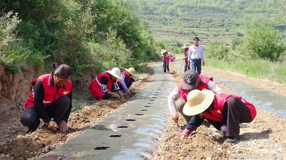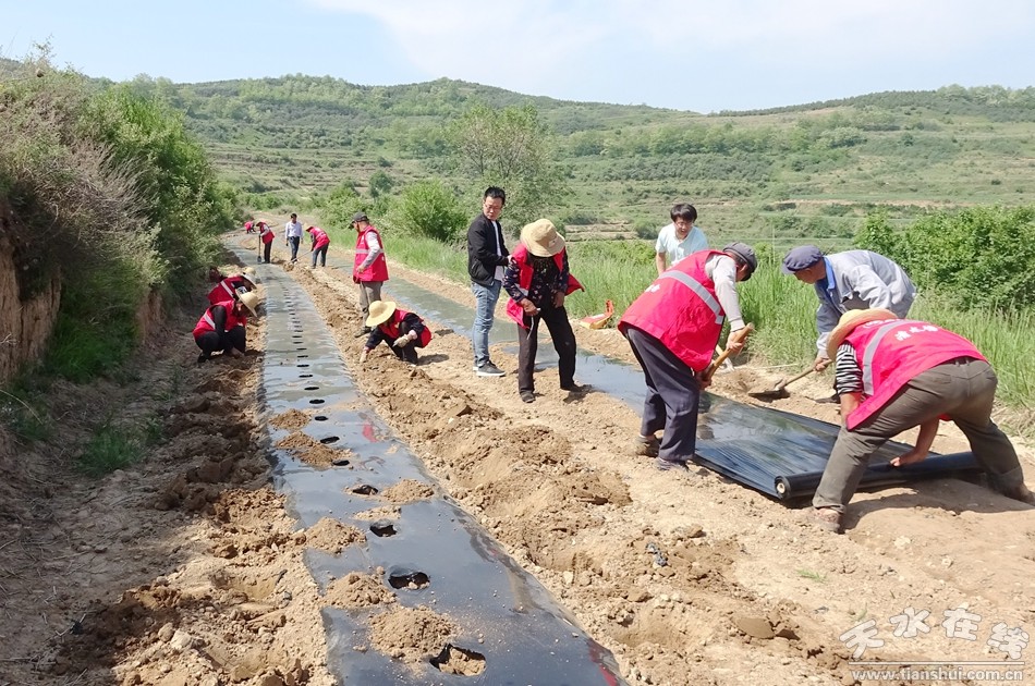 5月25日,高溝、新坪、太陽(yáng)新時(shí)代文明實(shí)踐站志愿者在高溝村幫助貧困戶栽植構(gòu)樹,在構(gòu)樹幼苗栽植現(xiàn)場(chǎng),處處人頭攢動(dòng)、一片忙碌景象,有的整理路渠,有的拉線整墑,有的覆蓋地膜,還有的在技術(shù)員的指導(dǎo)下移栽幼苗。