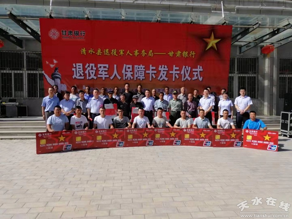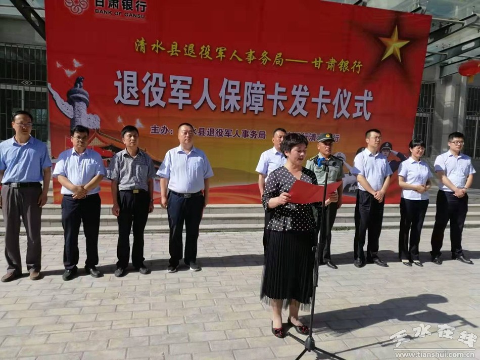 李寶玲表示,舉行退役軍人保障卡發(fā)卡儀式,這是認(rèn)真貫徹落實(shí)習(xí)近平總書記關(guān)于加強(qiáng)退役軍人服務(wù)管理工作,關(guān)心關(guān)懷退役軍人的具體舉措,也是甘肅銀行支持退役軍人自主創(chuàng)業(yè)開展行業(yè)擁軍的具體行動(dòng)。此項(xiàng)活動(dòng)的開展,無疑對(duì)鼓勵(lì)和支持退役軍人投身清水地方經(jīng)濟(jì)建設(shè),助力脫貧攻堅(jiān)產(chǎn)生重大而深遠(yuǎn)的影響。全縣廣大退役軍人在縣委縣政府的正確領(lǐng)導(dǎo)下,在社會(huì)各界的大力支持關(guān)懷下,積極主動(dòng)參與地方經(jīng)濟(jì)發(fā)展與農(nóng)業(yè)產(chǎn)業(yè)化建設(shè),在各自的崗位上發(fā)揮優(yōu)勢(shì),無私奉獻(xiàn),大膽創(chuàng)新,敢為人先,尤其在脫貧攻堅(jiān)主戰(zhàn)場(chǎng),主動(dòng)作為,身體力行,在平凡的崗位上詮釋著一位退役軍人敢于擔(dān)當(dāng)?shù)钠犯褚庵,凝心聚力,奮勇向前,軍民同心,軍地合力,共同譜寫新時(shí)代退役軍人改革創(chuàng)新謀發(fā)展的嶄新華章。