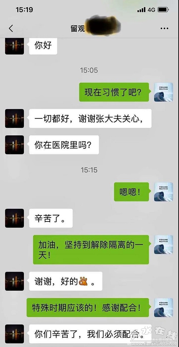 “醫(yī)生,請(qǐng)問(wèn)我什么時(shí)候才能解除隔離,我老婆懷孕了,我想早點(diǎn)出去陪她。”一位外來(lái)務(wù)工人員趙某焦急地問(wèn)!罢(qǐng)問(wèn)你們這里真的安全嗎?不會(huì)出現(xiàn)交叉感染嗎?”從國(guó)外返回的蔣某擔(dān)心地詢問(wèn)……為了緩解留觀人員精神上的恐慌、孤獨(dú)和無(wú)助,中醫(yī)院集中醫(yī)學(xué)觀察點(diǎn)的戰(zhàn)友們想盡一切辦法解除他們的后顧之憂,不厭其煩地做心理疏導(dǎo),打消他們的思想負(fù)擔(dān),使接受醫(yī)學(xué)觀察人員的內(nèi)心從最初的抵觸、忐忑、焦躁到后來(lái)的平和、理解、貼心。隔離病毒隔離不了愛(ài)心,愛(ài)與責(zé)任同在。在縣中醫(yī)院集中醫(yī)學(xué)觀察點(diǎn),每天都上演著感人的畫(huà)面,所有工作人員恪盡職守,臻于至善,默默守護(hù)所有“家人”。解除集中觀察的日子到來(lái)后,他們表達(dá)了對(duì)醫(yī)務(wù)人員的誠(chéng)摯謝意,離開(kāi)了這個(gè)短暫而又溫馨的“家”。自開(kāi)展集中醫(yī)學(xué)觀察以來(lái),已有23人順利解除觀察。