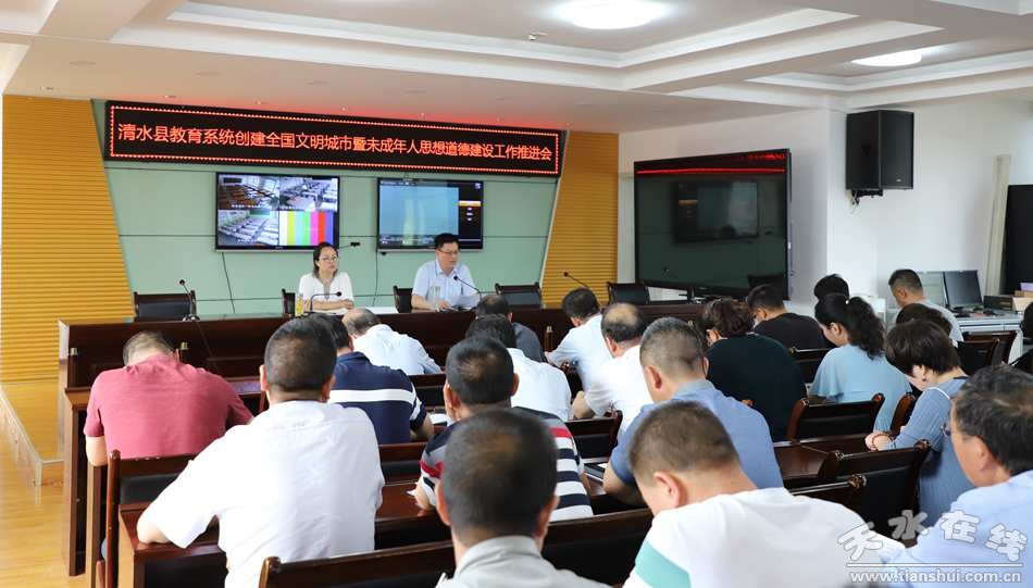7月28日,清水縣召開教育系統(tǒng)創(chuàng)建全國文明城市暨未成年人思想道德建設(shè)工作推進會議,縣委常委、宣傳部部長宋賢雄出席會議,并就教育系統(tǒng)創(chuàng)建全國文明城市、未成年人思想道德建設(shè)、文明校園創(chuàng)建、少年宮管理運行等工作做了具體安排部署;縣人大常委會副主任、教育局局長贠少靈出席會議。
