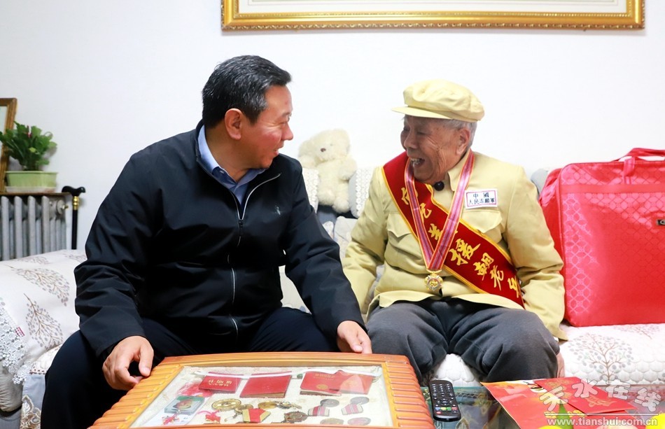 波瀾壯闊的抗美援朝戰(zhàn)爭中,英雄的中國人民志愿軍鍛造了偉大抗美援朝精神。不怕犧牲、英勇戰(zhàn)斗的光榮事跡和愛國情懷,永遠值得后人學習和敬仰,每一個中國人都應(yīng)深刻銘記抗美援朝戰(zhàn)爭的艱辛歷程和偉大勝利,弘揚偉大抗美援朝精神。10月27日上午,清水縣委副書記、縣長馬越垠專程走訪慰問部分抗美援朝志愿軍老戰(zhàn)士,將“中國人民志愿軍抗美援朝出國作戰(zhàn)70周年”紀念章送到他們手中,并向全縣所有健在的志愿軍老戰(zhàn)士、老同志致以崇高敬意和親切問候。