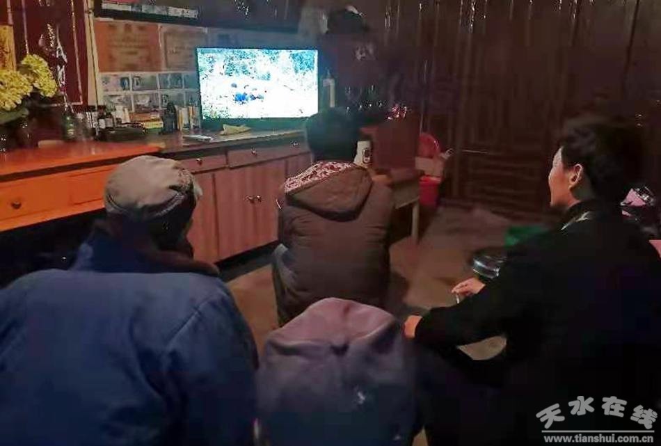 (草船鋪鎮(zhèn)九龍村村民在家中收看《擺脫貧困》第三集《使命在肩》)
