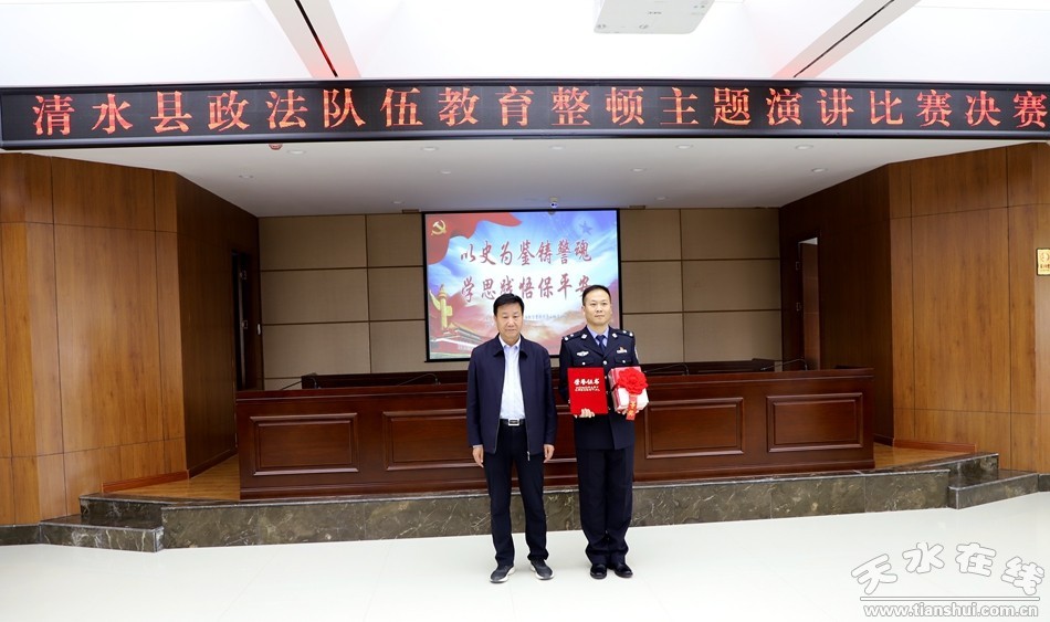 為進(jìn)一步深化政法干警對政法隊伍教育整頓重要性的認(rèn)識,拓展政法隊伍教育整頓學(xué)習(xí)教育渠道,全面提升干警政治素質(zhì),錘煉干警忠誠干凈擔(dān)當(dāng)?shù)恼纹犯瘛?月22日下午,清水縣舉辦“以史為鑒鑄警魂、學(xué)思踐悟保平安”的演講比賽。清水縣委常委、縣委政法委書記、縣政法隊伍教育整頓領(lǐng)導(dǎo)小組常務(wù)副組長王懷珍,副縣長、縣公安局局長、縣政法隊伍教育整頓領(lǐng)導(dǎo)小組副組長李寶玲觀看比賽并為獲獎人員頒獎。