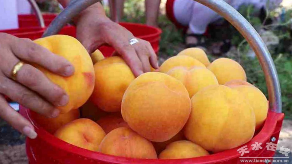 盛夏時節(jié),清水縣花舞北山景秀園里的黃桃陸續(xù)成熟,沉甸甸的果子掛滿枝頭,綠葉掩映間,金燦燦的黃桃飽滿水嫩,散發(fā)出誘人的桃香味。果農(nóng)們忙碌著采摘已成熟的黃桃,摘果、挑裝、分揀、包裝,供應(yīng)市場……一排忙碌的豐收場景。