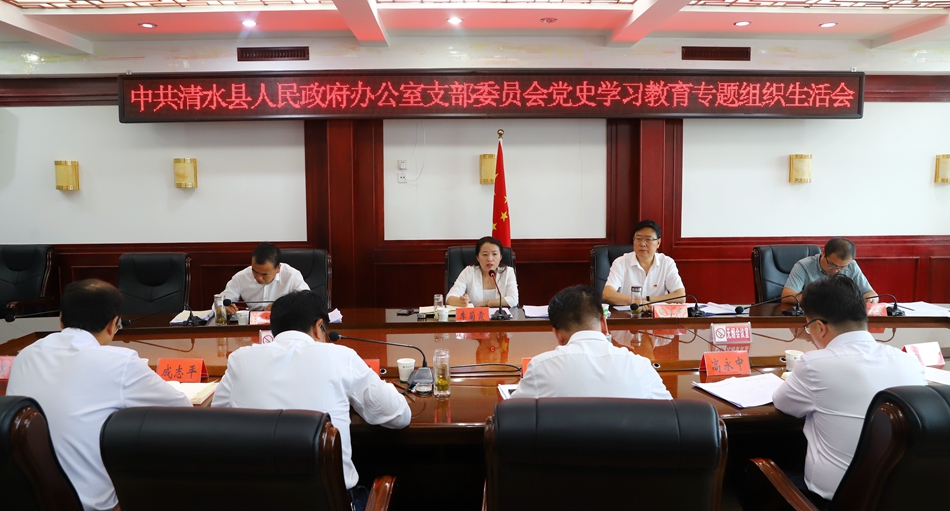 8月13日,清水縣委副書記、縣長李菊霞以普通黨員身份參加縣政府辦公室黨支部黨史學習教育專題組織生活會。市委黨史學習教育第六巡回指導組副組長張小平到會指導;縣委常委、副縣長馬創(chuàng)成參加會議。