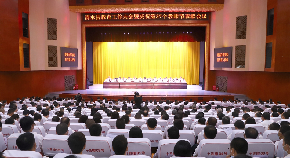 9月9日,清水縣在軒轅劇院召開教育工作大會(huì)暨慶祝第37個(gè)教師節(jié)表彰會(huì)議,表彰獎(jiǎng)勵(lì)2021年教育教學(xué)工作先進(jìn)學(xué)校和優(yōu)秀教育工作者、優(yōu)秀班主任、教學(xué)能手、師德模范共102名“園丁獎(jiǎng)”獲得者。
