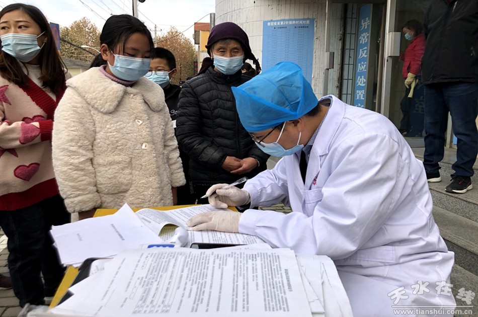 在清水縣疾控中心、清水縣醫(yī)院疫苗接種點(diǎn)、永清鎮(zhèn)衛(wèi)生院、清水縣婦幼保健站,工作人員提前設(shè)置了等候區(qū)、登記區(qū)、接種區(qū)和留觀區(qū),學(xué)生們?cè)诩议L(zhǎng)的陪同下,攜帶著身份證(戶(hù)口簿)、出生證、疫苗接種證,有序進(jìn)入疫苗接種咨詢(xún)登記區(qū)和候診區(qū),在醫(yī)護(hù)人員的指引下有序排隊(duì)接種。