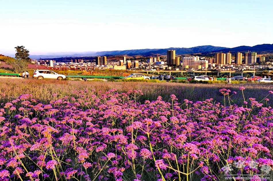剛爬上清水縣花舞北山園,浪漫氣息就撲面而來。大片的紫色馬鞭草在微風(fēng)中搖曳,千萬株花蕾同時綻放,層層疊疊、起起落落、飄飄裊裊,像不小心打翻的顏料盤,在山坡上渲染開來。近處的游客、花海與遠(yuǎn)處的街道、樓房,構(gòu)成了一幅“醉”美畫卷。