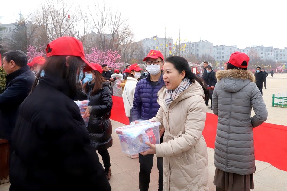 馬越垠、李菊霞、周偉東、丁旺喜等縣四大組織領(lǐng)導現(xiàn)場發(fā)放愛心禮包并歡送他們外出務(wù)工。