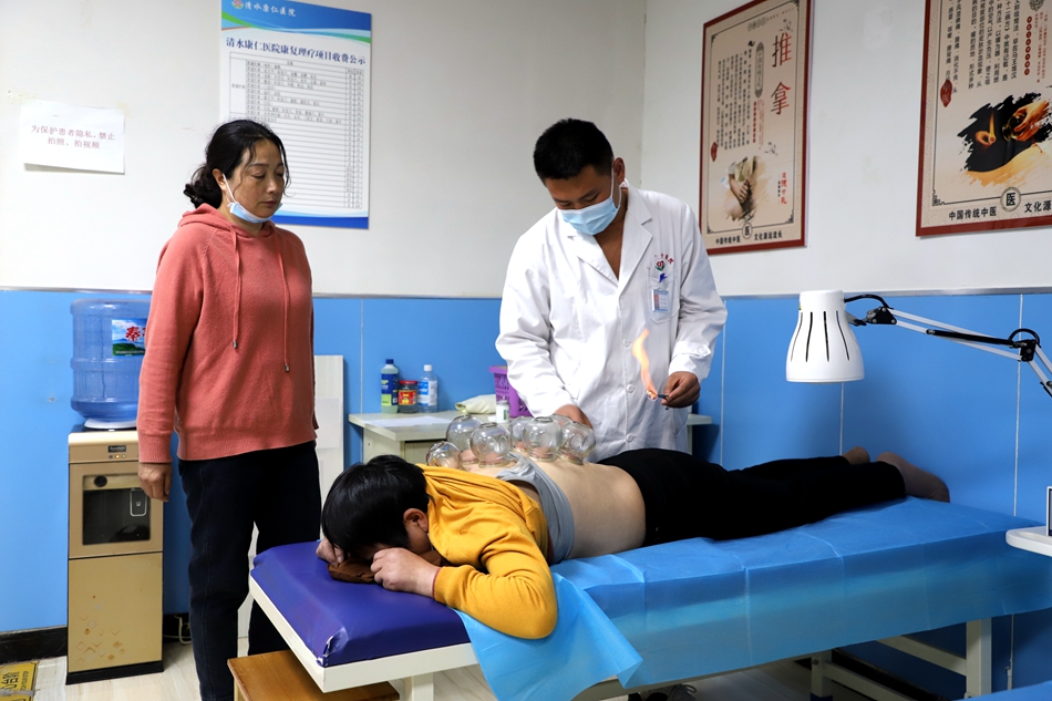 清水縣康仁醫(yī)院治未病·中醫(yī)養(yǎng)生館館長王福勝介紹說,“我們中醫(yī)養(yǎng)生館主要開展熏蒸,艾灸,按摩,推拿,刮痧,拔罐等治療方法,受到廣大群眾的好評,最有特色的是中醫(yī)熏蒸,艾灸,通過中藥加熱給人體達到舒筋活血、止痛、養(yǎng)生的作用,通過以前的臨床經(jīng)驗,現(xiàn)在中西醫(yī)結(jié)合,是最具科學(xué)的養(yǎng)生方法!
