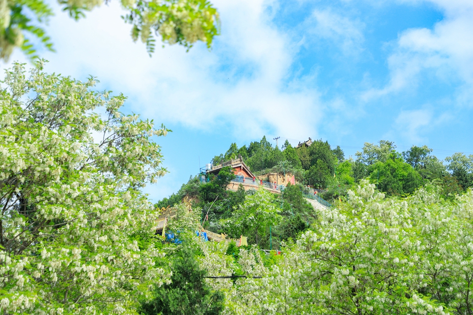 沿著紅崖觀的步道前行,一串串繁盛槐花風起且舞,從山頂俯瞰,漫山遍野潔白、紫紅、翠綠交相輝映,萬畝槐花卷地而來,十里飄香,沁人心脾,槐花成了清水一道亮麗的風景。