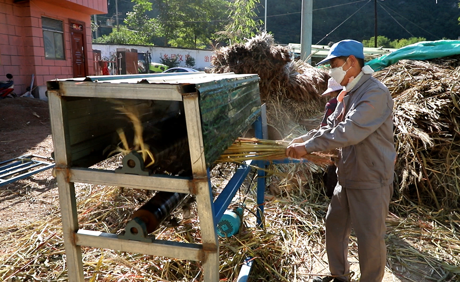 “今年種植的新品高粱現(xiàn)已進入收割階段。采摘的黃高粱苗子運送到加工廠加工成掃帚,剔下來的高粱籽還能賣給酒廠,秸稈加工成飼料,黃高粱的每一個部分都用途充分。加工廠現(xiàn)已經(jīng)形成了自種自產(chǎn)自銷的一體化全產(chǎn)業(yè)鏈模式,產(chǎn)品供不應求!背刹嵡鍧嵱闷酚邢薰矩撠熑诵旆汲烧f。