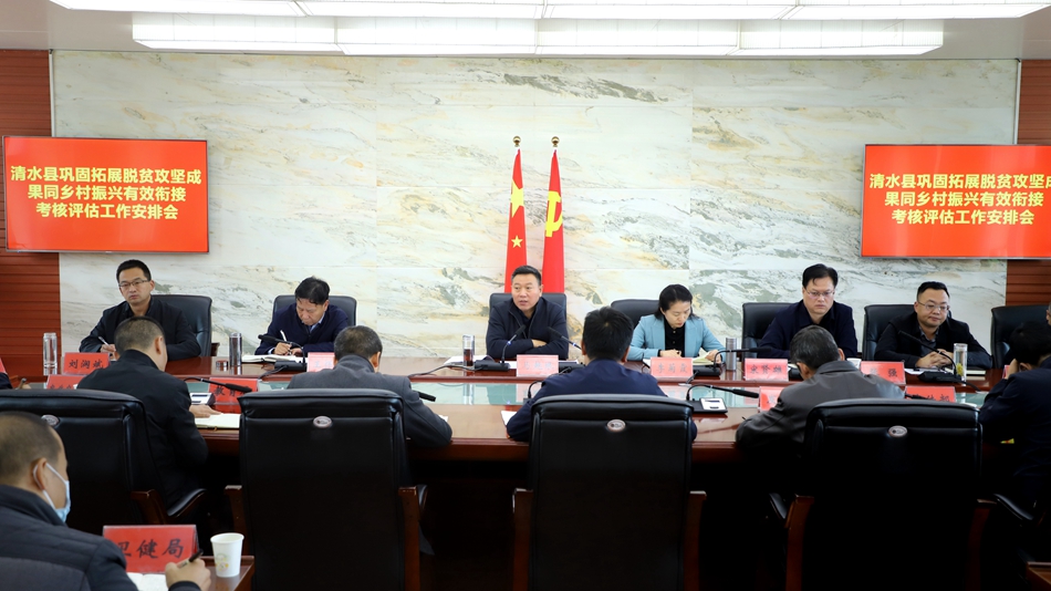 10月9日,清水縣召開(kāi)鞏固拓展脫貧攻堅(jiān)成果同鄉(xiāng)村振興有效銜接考核評(píng)估工作安排會(huì),深入學(xué)習(xí)習(xí)近平總書(shū)記關(guān)于鞏固拓展脫貧攻堅(jiān)成果同鄉(xiāng)村振興有效銜接重要指示批示精神,安排部署近期重點(diǎn)工作?h委書(shū)記馬越垠主持會(huì)議并講話,縣委副書(shū)記、縣長(zhǎng)李菊霞以及縣領(lǐng)導(dǎo)宋賢雄、王懷珍、張強(qiáng)、劉潤(rùn)斌、曲俊強(qiáng)出席會(huì)議。