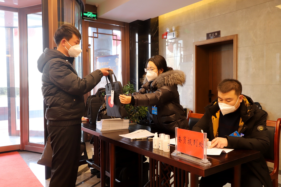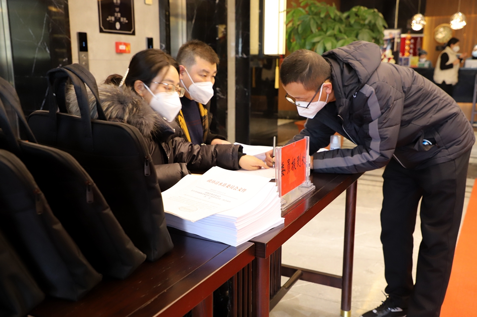 當天,在現(xiàn)場工作人員的指引下,政協(xié)委員們有條不紊地辦理報到手續(xù)、領(lǐng)取證件和會議資料。完成報到后,委員們紛紛佩戴起出席證,并互相交流提案及收集到的社情民意。