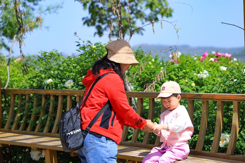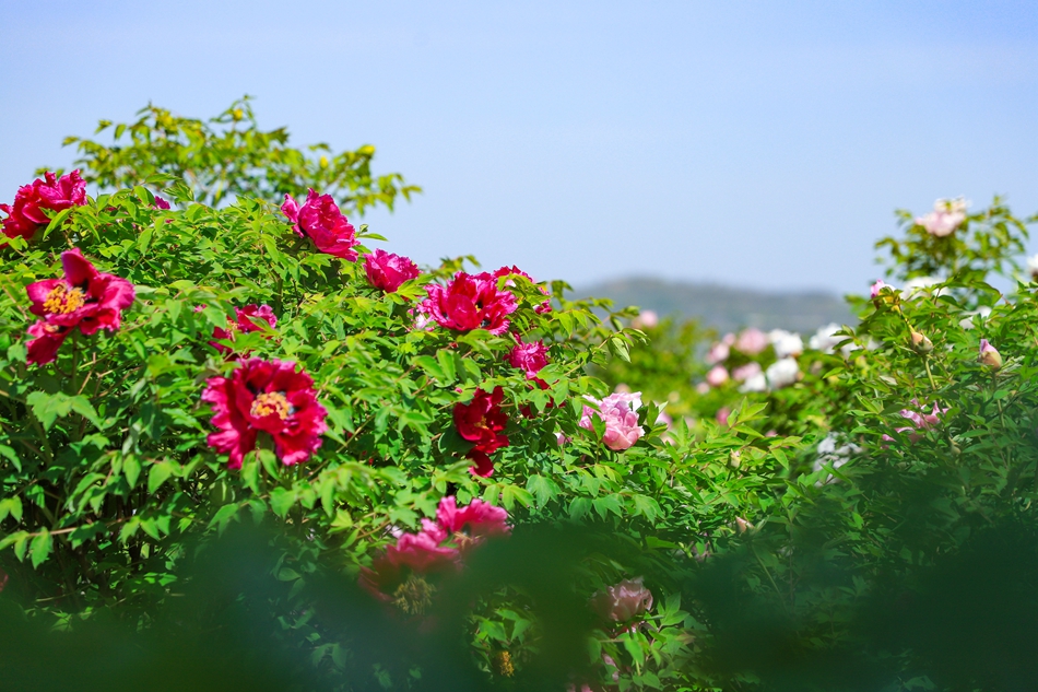 走進牡丹園,成片的牡丹花競相開放,園內(nèi)幽香陣陣,一朵朵牡丹姿態(tài)各異、深紫、淺粉、大紅、白色等各種顏色繽紛奪目,姹紫嫣紅,蜜蜂、蝴蝶在花叢中翩翩起舞。一陣微風吹過,花朵隨風搖曳,濃郁花香撲面而來,沁人心脾,交相輝映的花苞則顯得更加嬌艷欲滴,惹人憐愛。前來賞花的游人絡(luò)繹不絕,大家或駐足觀賞,或拍照留念,沉醉在“牡丹花開香滿園”的詩情畫意中。