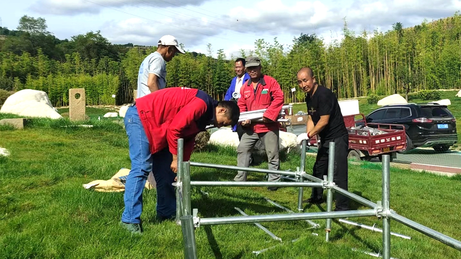 在北山生態(tài)景區(qū)松竹梅三友小園,施工人員正在搭建節(jié)日期間需要使用的演出舞臺。據(jù)了解,中秋國慶期間,在北山生態(tài)景區(qū)三友小園內(nèi),將舉辦以花好月圓“舞”中秋、詩情畫意“醉”中秋、明月千里“詠”中秋、月照北山“話”中秋為主題的音詩畫活動。