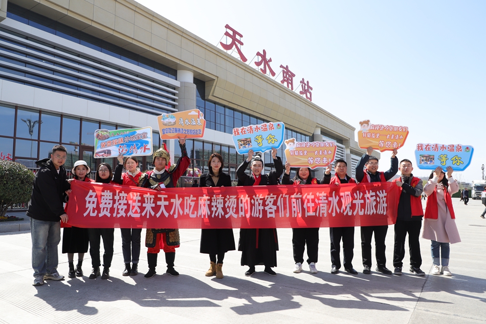 為借助天水麻辣燙熱度推廣清水縣特色產品及旅游資源,提高“軒轅故里·康養(yǎng)福地”公共地域品牌知名度,助推縣域經濟高質量發(fā)展,清水縣積極組織參加各類宣傳推介活動。3月25日,清水縣組織人員在天水南站出站口開展特色產品推介活動,宣傳清水旅游文化資源,展示特色產品,吸引游客走進清水“游軒轅故里、品充國老酒、飲沙棘原漿、泡湯峪溫泉”。