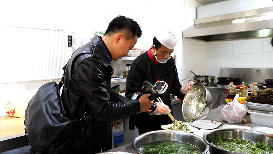 在軒轅湖上,博主手持直播設(shè)備,穿梭在演出現(xiàn)場,體驗當(dāng)?shù)鬲毦咛厣姆沁z文化展演,身臨其境感受軒轅大帝的震撼,近距離欣賞現(xiàn)場“剪紙”,用鏡頭記錄每一個精彩的演出,時刻與直播間網(wǎng)友分享精彩瞬間。他來到溫泉村上王莊農(nóng)家樂沉浸式體驗了清水縣特色美食“散飯“、農(nóng)家野菜苜蓿、香椿、烏龍頭等菜品,不同程度地展示了當(dāng)?shù)靥厣朗车闹谱鬟^程,從選材到蒸煮,從擺盤到色澤,色、形、味的完美融合,讓博主“大眼”贊不絕口,拍攝記錄其美好“姿色”,嗅而咀嚼其美妙“滋味”,宣傳推介旅游康養(yǎng)資源。
