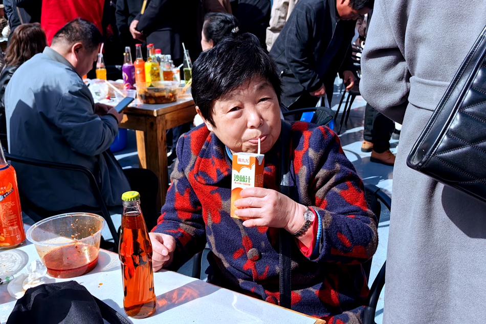 除了“一碗手搟粉+一盤麻辣菜”的搭配外,一瓶酸甜解膩的沙棘汁正逢其時。