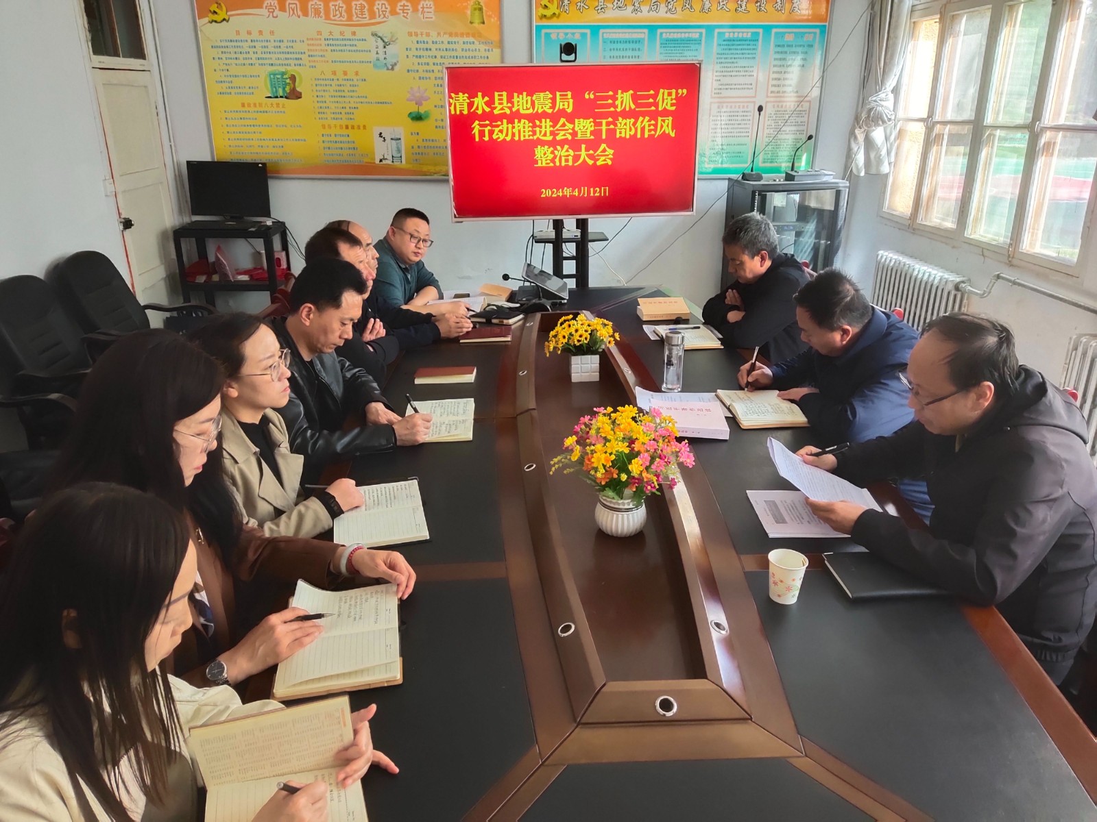 為進一步推進“三抓三促”工作,切實轉(zhuǎn)變干部作風,全力落實全縣工作會議精神,扎實推進2024年防震減災(zāi)工作有力有序有效的開展。近日,清水縣地震局組織召開了“三抓三促”行動推進會暨干部作風整治會議?h紀委監(jiān)委派駐政府辦紀檢監(jiān)察組負責人受邀出席,地震局全體干部職工參加會議。
