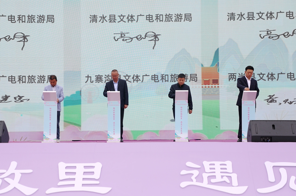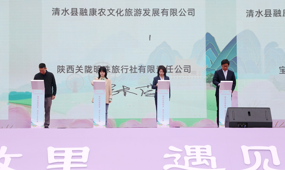 當天上午,清水縣文體廣電和旅游局與陳倉區(qū)、隴縣、九寨溝縣、兩當縣、華池縣文旅局簽訂了旅游戰(zhàn)略合作協議;清水縣融康農文化旅游發(fā)展有限公司與陳倉區(qū)、隴縣、九寨溝縣、兩當縣、華池縣旅行社簽訂了旅游戰(zhàn)略合作協議。省市縣嘉賓、陜甘川毗鄰地區(qū)文旅環(huán)線戰(zhàn)略聯盟成員單位代表共同啟動2024年清水縣丁香文化旅游活動。