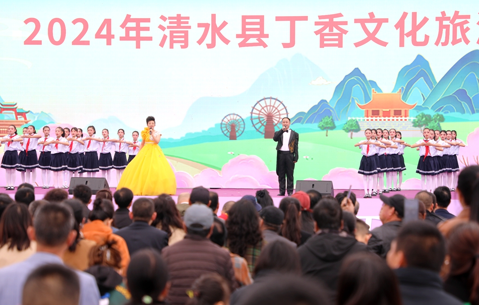 歌伴舞《丁香花開漫清水》拉開了相約軒轅故里·遇見丁香花海2024年清水縣丁香文化旅游活動的序幕!饵S帝頌》《春風十萬里》等節(jié)目精彩紛呈、引人入勝,讓在場觀眾大飽眼福,贏得陣陣熱烈掌聲。