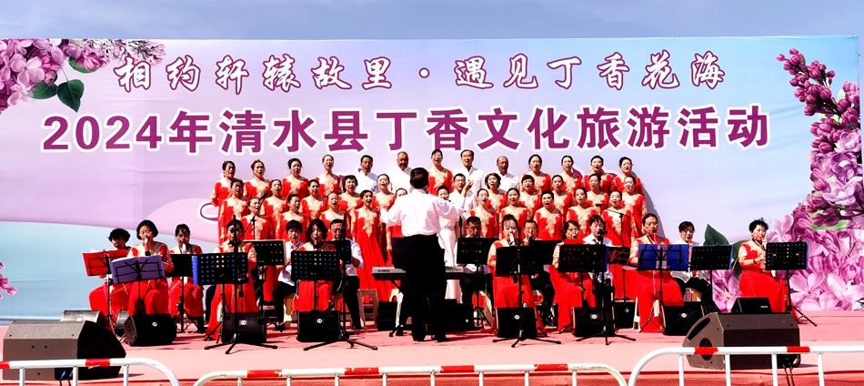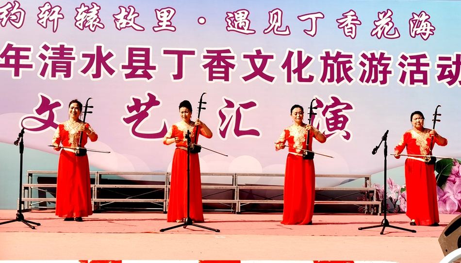 演出在管樂合奏《歡慶舞曲》中拉開了序幕,大合唱《祖國頌》《壯美延安》唱出了對祖國的贊美與熱愛,舞蹈《鴻雁》流暢婉轉(zhuǎn),讓人仿佛置身于遼闊草原,秦腔《打金枝》選段讓現(xiàn)場觀眾再次感受到了國粹的魅力。此外,還有舞蹈《爺爺奶奶和我們》,二胡齊奏《八月桂花遍地香》《金蛇狂舞》,現(xiàn)代舞《颯》,葫蘆絲曲《梨花雨》等14個內(nèi)容豐富的精彩節(jié)目輪番上演,為2024年清水縣丁香文化旅游活動助力添彩。