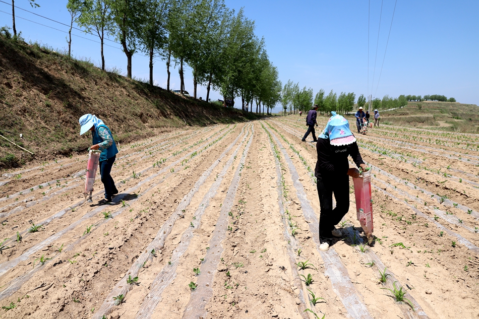 眼下,正是大豆玉米種植管理的好時節(jié),記者走進金集鎮(zhèn)大豆玉米帶狀復合種植示范點,遠遠望去漫山遍野的玉米苗和大豆苗長勢良好,出土約10厘米,村民們正在地里忙著鋤草、玉米勻苗、補種之前因機播漏播的大豆種子,田地里繪出了一幅生機勃勃的田園豐景畫卷。