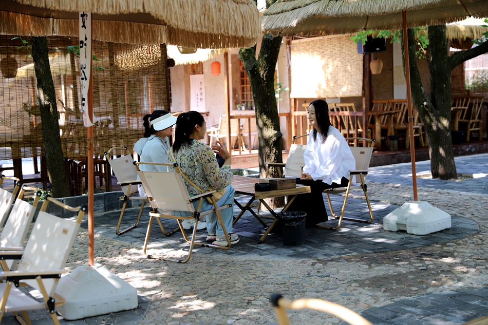 “輕煮歲月慢煮茶,閑享人間煙火氣!痹谇逅h永清鎮(zhèn)蘇屲村谷坨自然村有這樣一處休憩放空的好去處北山小院。小院綠樹(shù)環(huán)繞、門口薔薇花開(kāi)得正艷,古色古香的裝修風(fēng)格,盡顯情調(diào)與煙火氣,坐在院內(nèi)品茗養(yǎng)生,喝茶的同時(shí)還能享受非遺文化,體驗(yàn)傳統(tǒng)技藝。