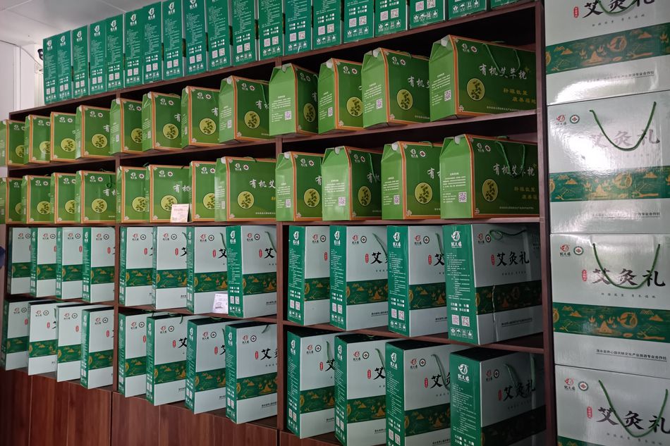 走進(jìn)清水縣養(yǎng)心園農(nóng)耕文化產(chǎn)業(yè)旅游專業(yè)合作社,儲(chǔ)藏倉庫里艾草高垛,捆捆堆積如小山;細(xì)密柔軟的艾絨經(jīng)過機(jī)器加工變身為有序排列的根根艾條;展銷大廳里艾草產(chǎn)品琳瑯滿目,從傳統(tǒng)的艾條、艾柱到按摩精油、艾絨家紡等應(yīng)有盡有。