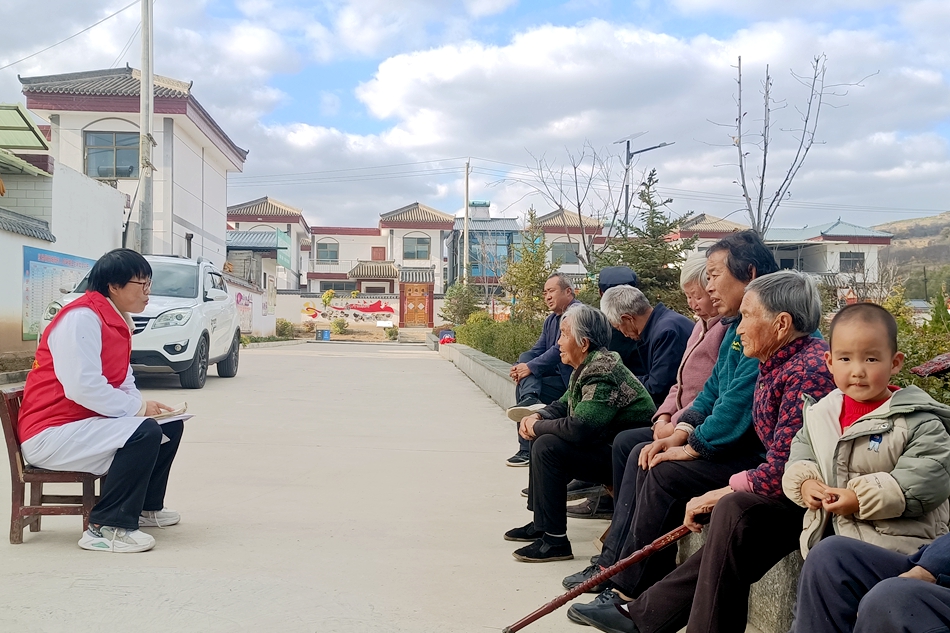 逐戶走訪完成后,看到不少村民從家中走出來(lái),在寬敞的文化廣場(chǎng)上曬太陽(yáng)。劉伊婷又從藥箱中拿出宣傳資料,現(xiàn)場(chǎng)開(kāi)起了醫(yī)療知識(shí)小課堂。