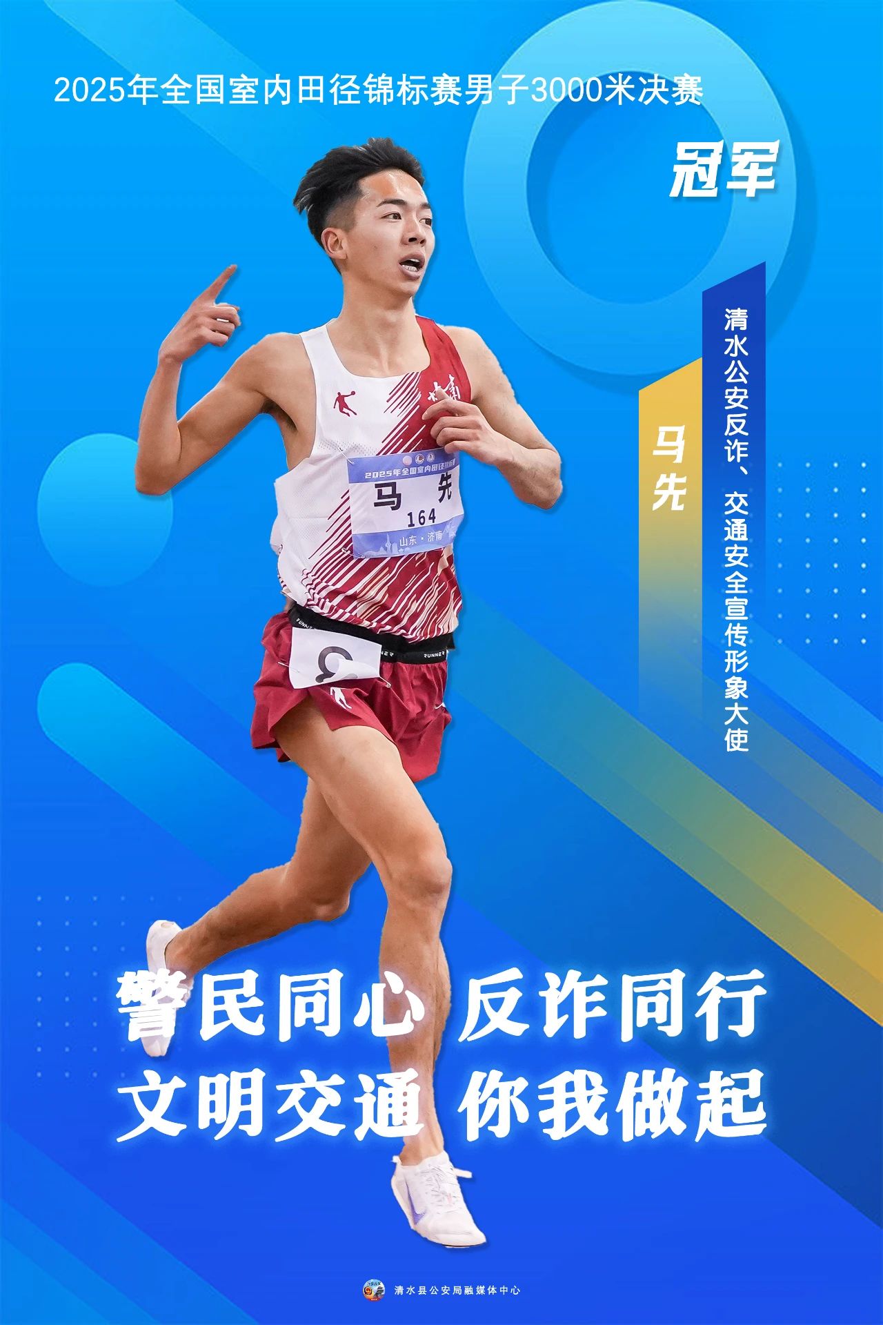 3月9日,2025年全國室內(nèi)田徑錦標賽在山東濟南落幕。清水籍選手馬先,在全國室內(nèi)田徑錦標賽男子3000米決賽中,以8分12秒33的成績奪冠,并刷新了個人最好成績。馬先在賽場上留下了無數(shù)精彩瞬間,成為大家心目中的運動偶像。
