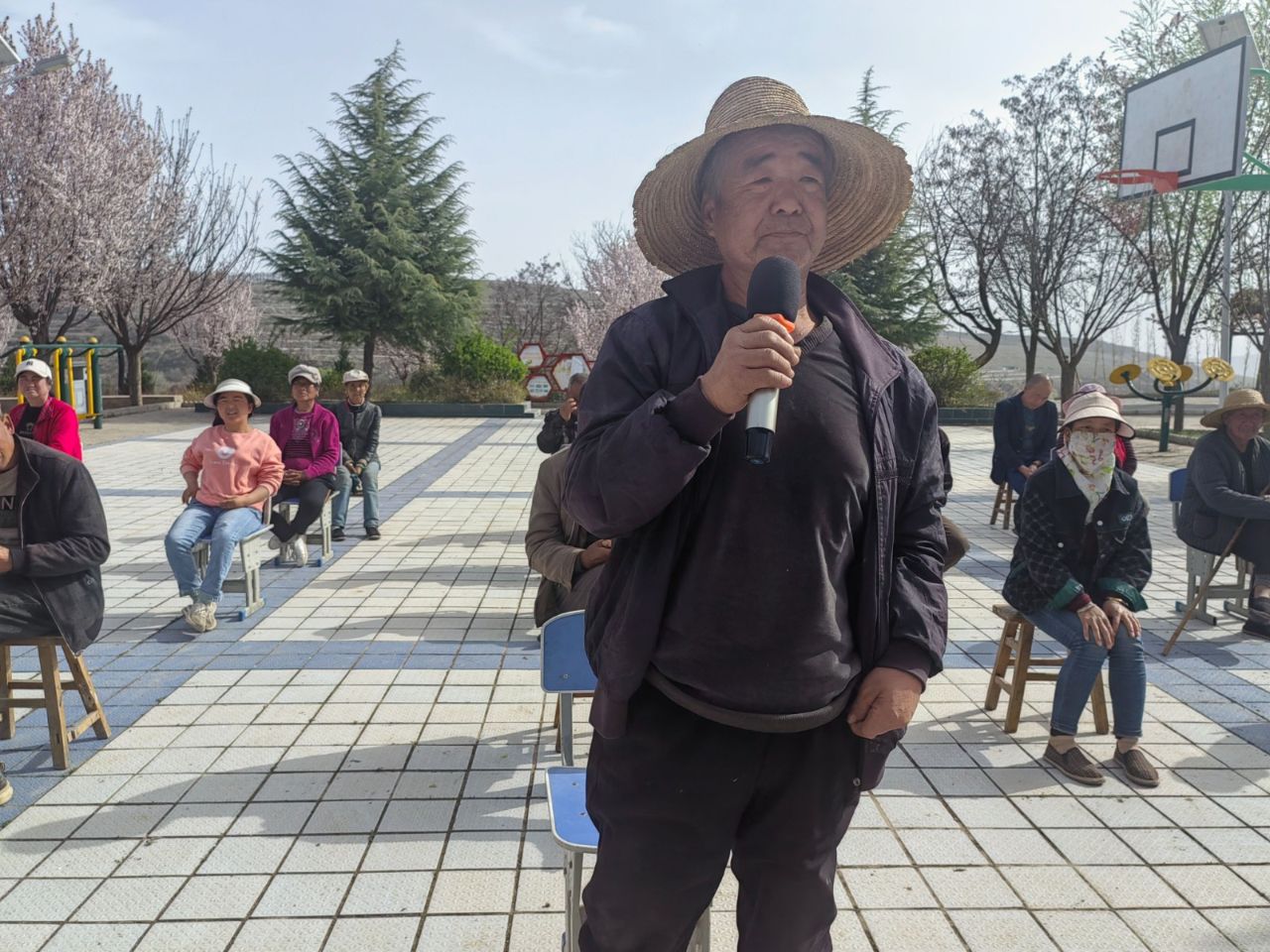 實績說話,用成果彰顯擔(dān)當(dāng);顒右潦,由曹溝村駐村第一書記白旭斌及駐村工作隊員鄭金虎、薛俊峰3人分別對自己在“四百”主題活動開展以來為群眾辦理的實事,解決的實際困難進(jìn)行了匯報闡述,分享了近期幫辦實事的典型案例。在“四百”主題行動走訪中,駐村工作隊員了解到曹溝村二組村民希望在楊溝自然村的晾曬場內(nèi)安裝一些健身器材,從而方便村里的老年人以及孩子鍛煉身體的訴求,及時進(jìn)行了上報并與市體育局積極進(jìn)行了溝通銜接,于2025年2月在楊溝晾曬場以及廣場安裝了籃球架2套,乒乓球桌2張,以及各類健身器材7套,進(jìn)一步有效改善了群眾的精神文化水平,有效解決了群眾的實際困難,這一案例讓現(xiàn)場群眾切實感受到“四百”行動帶來的實惠,也對后續(xù)問題解決充滿期待。