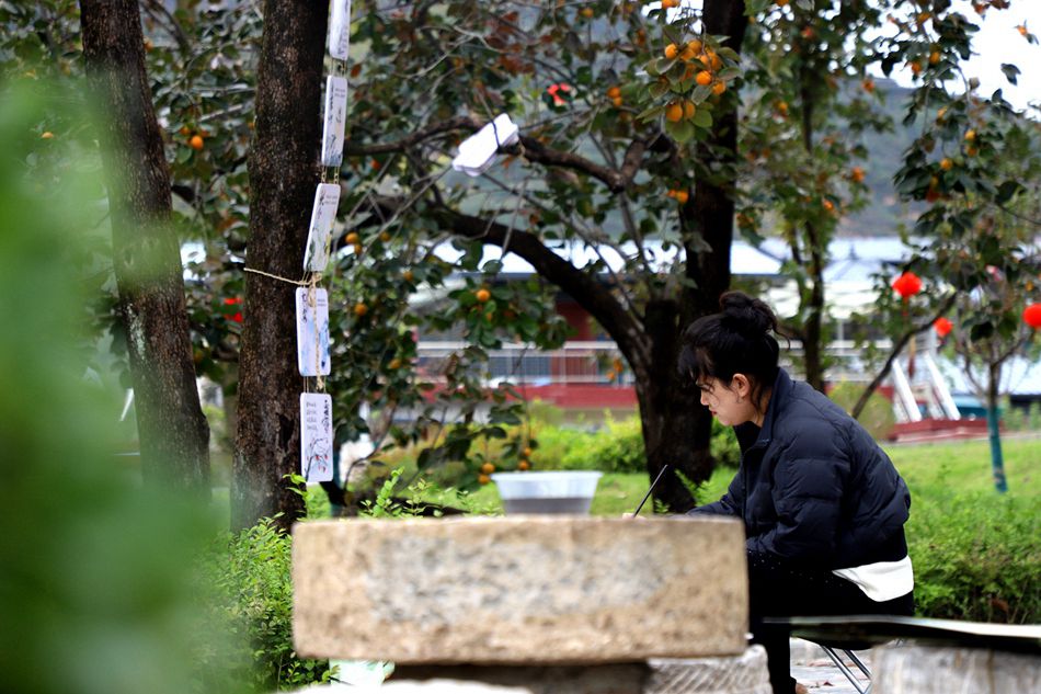 沿著村道往里走,周家如意園的景致便如一幅鮮活的秋畫徐徐展開,如詩如畫。潺潺細(xì)流從石塊間緩緩流下,草亭錯落有致,紅燈籠點(diǎn)綴其間;柿子樹綴滿橙紅果實(shí),沉甸甸垂在枝頭,“柿柿如意”的美好寓意撲面而來。村里的孩子們嬉鬧追逐,文藝愛好者閑坐寫生,游人駐足賞景,每個人都沉浸在這份秋日獨(dú)有的愜意里,感受著秋日的別樣風(fēng)情。