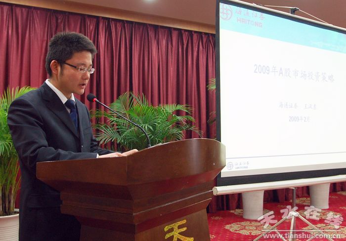 2009年的中國(guó)證券市場(chǎng),正從去年持續(xù)大跌的陰霾中逐漸覺醒,成為全球金融危機(jī)尚未見底的資本市場(chǎng)里的“一枝獨(dú)秀”。但是,在我國(guó)經(jīng)濟(jì)發(fā)展速度明顯下行、國(guó)家經(jīng)濟(jì)宏觀調(diào)控政策趨向擴(kuò)大內(nèi)需的經(jīng)濟(jì)態(tài)勢(shì)下,作為投資者如何把握住每一次投資機(jī)會(huì),這既是廣大投資者最為關(guān)心的話題,也是海通證券天水服務(wù)部秉承一切為了客戶之宗旨的核心內(nèi)容之一;诖,海通證券天水服務(wù)部特邀海通證券總部投資理財(cái)中心投資總監(jiān)王漢東先生親臨天水,圍繞實(shí)盤操作,深入解析09年市場(chǎng)運(yùn)行規(guī)律、指名投資方向,挖掘投資機(jī)會(huì)。據(jù)了解,畢業(yè)于上海財(cái)經(jīng)大學(xué)經(jīng)濟(jì)學(xué)碩士的王漢東,現(xiàn)任海通證券總部投資理財(cái)中心投資總監(jiān),注冊(cè)會(huì)計(jì)師(CPA),是中國(guó)證監(jiān)會(huì)核準(zhǔn)的首批投資咨詢執(zhí)業(yè)人員,擁有14年證券從業(yè)經(jīng)驗(yàn),具有150多家上市公司調(diào)研經(jīng)驗(yàn),具備廣泛的行業(yè)投研渠道積累,豐富的實(shí)戰(zhàn)經(jīng)驗(yàn),市場(chǎng)思路敏捷,善于挖掘潛力公司及轉(zhuǎn)折性企業(yè)的投資機(jī)會(huì)。