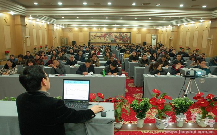 海通證券蘭州業(yè)務(wù)總部總經(jīng)理助理韓偉華、海通證券天水服務(wù)部經(jīng)理蘇藝以及我市投資者300余人參加了報(bào)告會(huì)。