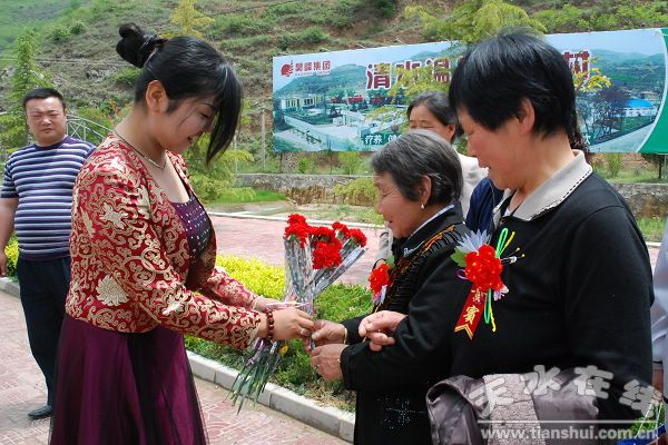 (溫泉度假村員工給昊峰集團(tuán)優(yōu)秀員工母親獻(xiàn)花)