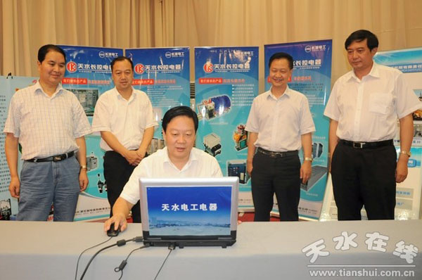 楊林、宋博華、趙衛(wèi)東、竇正安陪同楊維俊點(diǎn)擊開通由天水在線網(wǎng)站承建的天水電工電器行業(yè)協(xié)作配套信息交流平臺