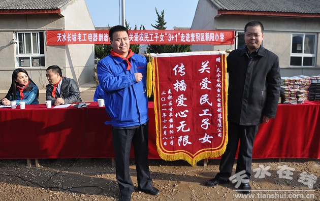(朝陽小學(xué)為天水長城電工電器制造有限公司贈送錦旗)