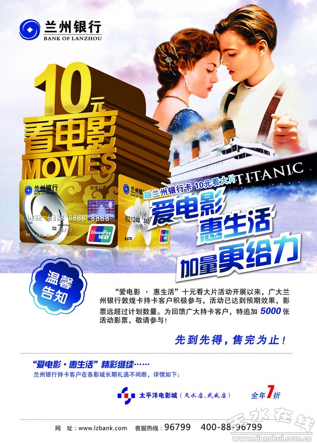 刷蘭州銀行敦煌卡 在太平洋影城十元看電影