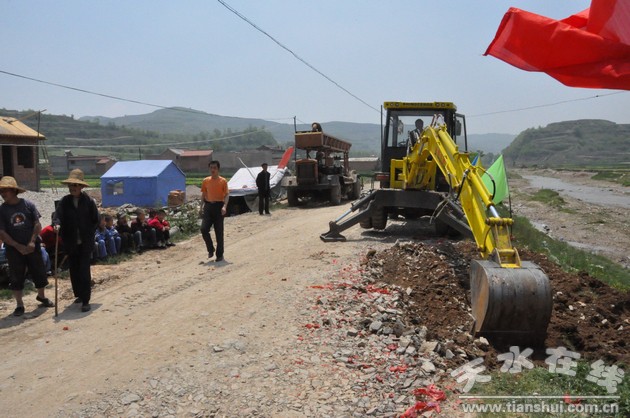 5月18日,流經(jīng)天水市秦州區(qū)天水鎮(zhèn)石徐村的西漢水河北岸,激情奔放的樂(lè)曲在空中回蕩,路邊的彩旗迎風(fēng)飄揚(yáng),一串串紅色的鞭炮、一筒筒慶典禮炮沿河岸依次擺放,河兩岸的村民成群結(jié)隊(duì),路旁的挖掘機(jī)、打樁機(jī)昂首挺立。這一切,為大山深處的小村莊——石徐村憑添了幾分喜慶氣氛。此時(shí),離公司為石徐村修建的“星火連心橋”開(kāi)工儀式不到20分鐘。