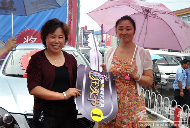(天水橋南家居建材城總經(jīng)理鄭秀芳為中獎客戶頒發(fā)車鑰匙)