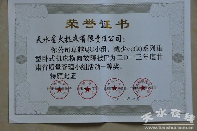 星火機(jī)床公司6項(xiàng)QC成果在全省獲獎(jiǎng)(圖)