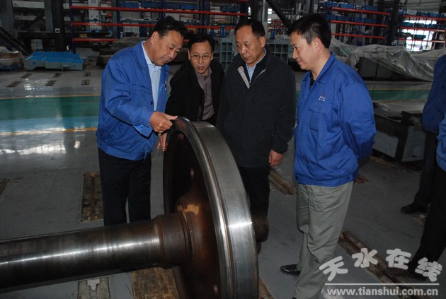 11月8日,甘肅省國資委主任馬艾武一行數(shù)人,在天水市國資委有關(guān)部門領(lǐng)導(dǎo)的陪同下來工業(yè)園生產(chǎn)現(xiàn)場調(diào)研生產(chǎn)經(jīng)營情況。星火機(jī)床公司黨委書記、副總經(jīng)理王永革,常務(wù)副總經(jīng)理劉勝接待并陪同參觀生產(chǎn)現(xiàn)場。