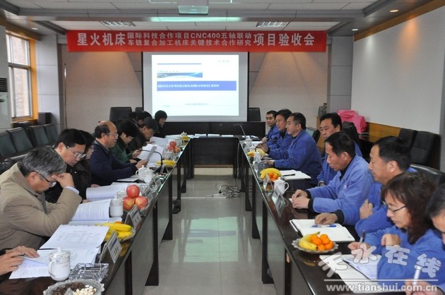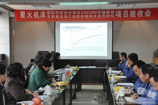 甘肅省科技廳國(guó)際合作處處長(zhǎng)歐陽(yáng)春光主持驗(yàn)收會(huì)。甘肅省科技廳國(guó)際合作處副處長(zhǎng)陳小飛,天水市科技局副局長(zhǎng)景凌云,市科技局高新科科長(zhǎng)張雪松,星火機(jī)床公司領(lǐng)導(dǎo)李維謙、王永革、劉勝、劉強(qiáng),技術(shù)中心負(fù)責(zé)人、部分參與項(xiàng)目的技術(shù)人員參加了驗(yàn)收會(huì)。